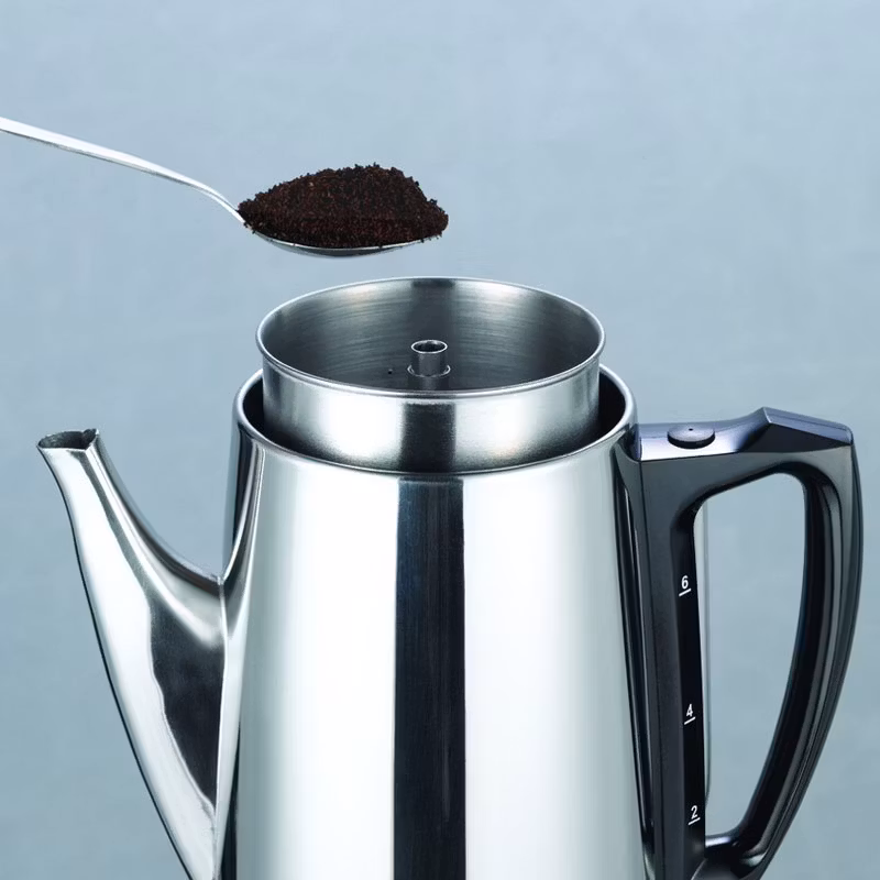 Perkolatorn är en traditionell kaffebryggare som filtrerar kaffet tills önskad styrka uppnås. Eftersom kontakttiden med vattnet är ganska lång rekommenderar vi att använda pressokaffe till perkolatorn. Resultatet blir starkt varmt kaffe med en utomordentlig arom. S-märkt via Intertek.