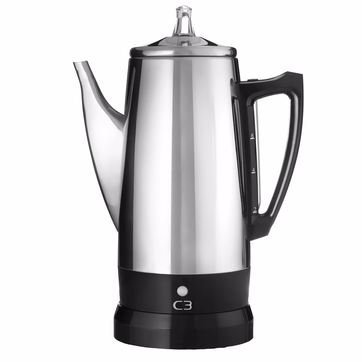C3 Original/Basic Perkolator brygger starkt, varmt kaffe med en fin arom. Perkolatorn är tillverkad av blankpolerat rostfritt kvalitetsstål. Signallampan tänds när kaffet är klart och går automatiskt in i varmhållningsläge. Tack vare varmhållningselementet på endast 50W, kan bildning av garvsyra undvikas och kaffet smakar nybryggt flera timmar efter bryggning. Den sladdlösa utformningen underlättar serveringen. Perkolatorn har en Skandinavisk design med ett elegant intryck.