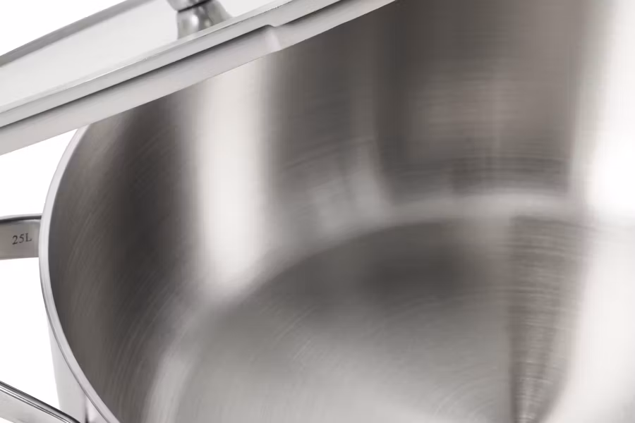 Dubbla öron med riktigt bra grepp gör det säkert och smidigt att hantera denna rejäla traktörpanna. Det tillhörnade glaslocket gör att du enkelt kan se vad som händer i grytan utan att släppa ut värmen. Locket har en vacker knopp med debossed Culimat logotype. Lockets mattborstade kant ger en läcker och exklusiv känsla och den silikonklädda kanten gör att locket ligger elegant och stabilt. Silikonkanten har även en sidoventil för ånga vilket gör att pannan är perfekt för båda hängande köksfläktar och de nya spishällarna som har inbyggd fläkt i hällen.